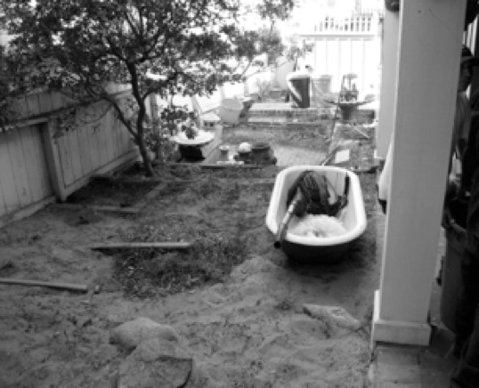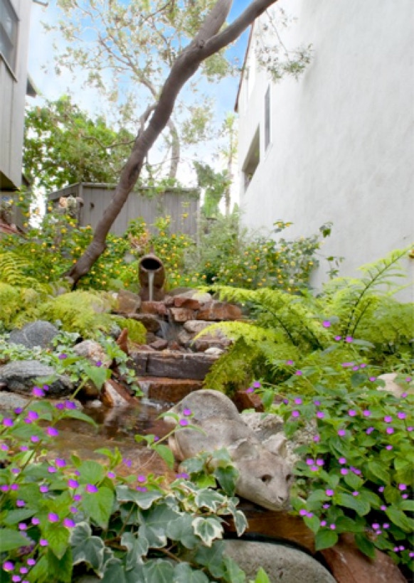 A retired teacher and an opera singer's long, narrow side yard in Hermosa Beach had become derelict, a dark left-over space where trash cans and tools accumulated.