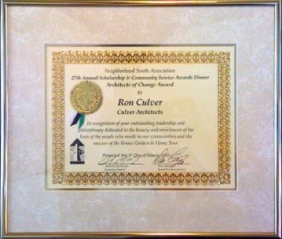 Ron Culver was selected by the Neighborhood Youth Association of Venice CA to be honored as an...