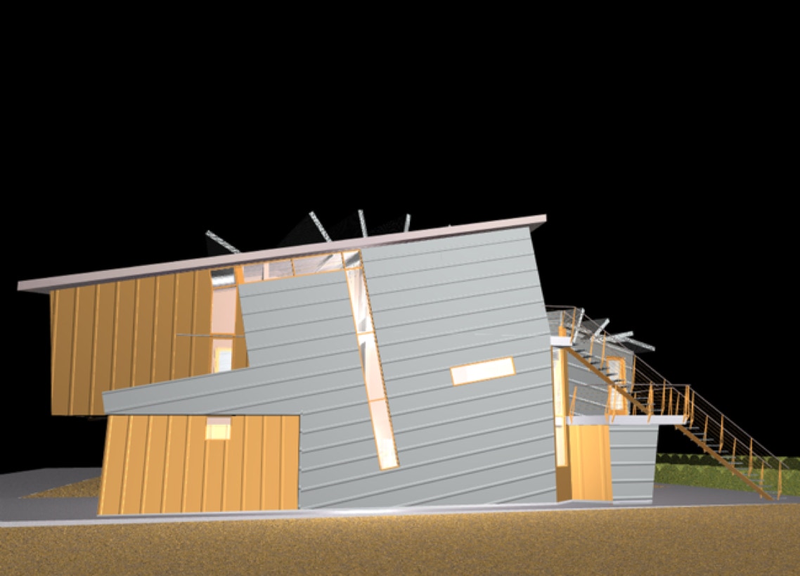 Diagonal cuts facilitate internal light and circulation while protecting privacy.