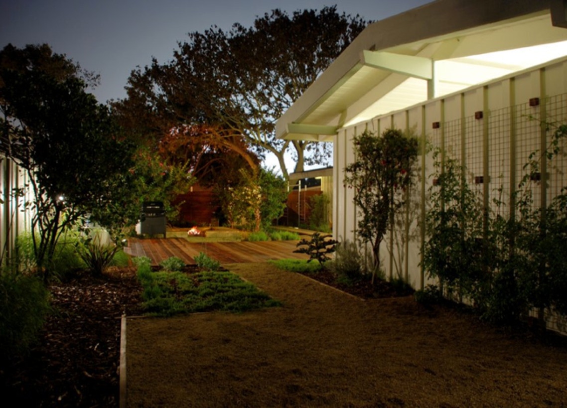 The living room and master suite transition onto a redwood entertaining deck.